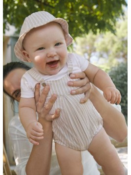 Barboteuse beige rayée avec chapeau 1602 045 - MAYORAL