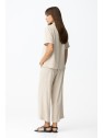 Pantalon large court beige à rayures femme 10064595 134 - TIFFOSI